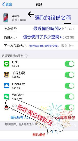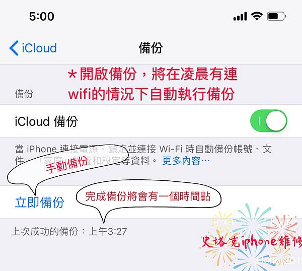 備份完成後將在下方出現小字,有備份的時間點唷!