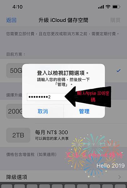 選取好您要的方案,下一步輸入您的蘋果帳號密碼